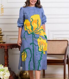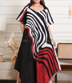 Elizebeth Liyana Batik Dress in rich crimson tones with intricate Java-inspired patterns.