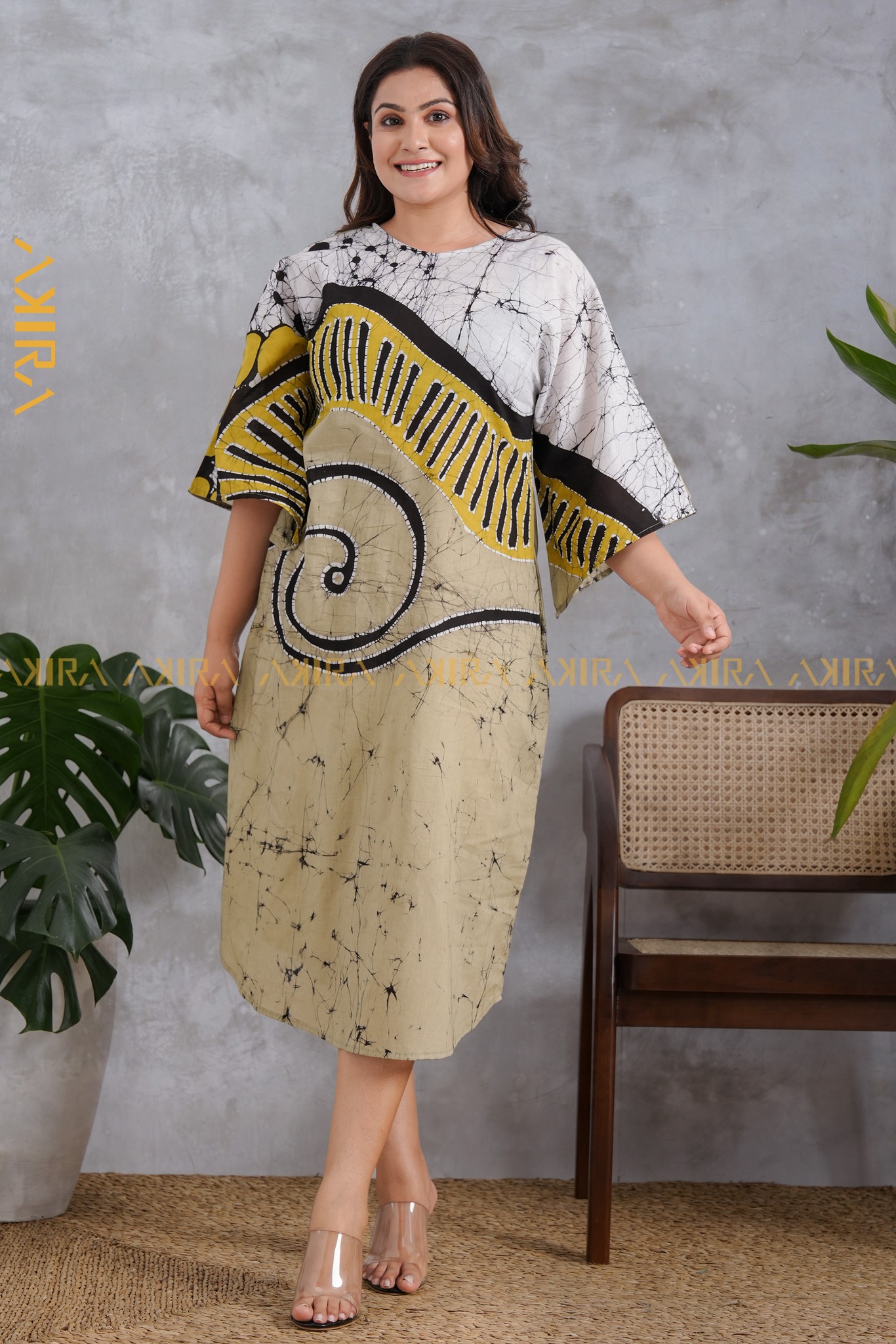 Amazing Orchid Batik Dress in rich crimson tones with intricate Java-inspired patterns.