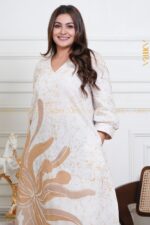 Aurora Fit Flowery Batik Dress features delicate floral batik patterns with a flattering, graceful fit.