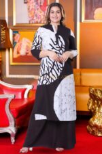A sleek black kurti with contemporary cuts and elegant detailing, perfect for stylish and versatile wear.