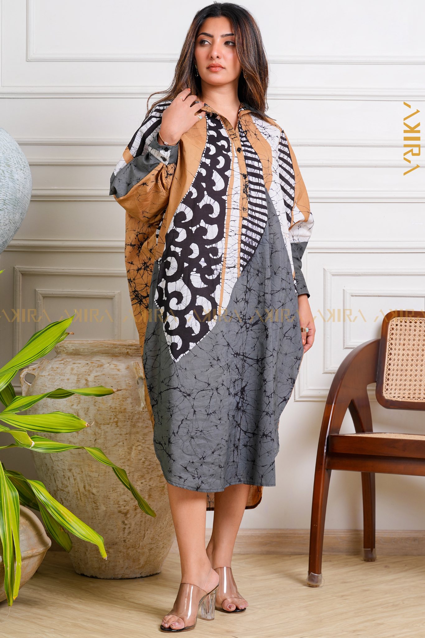 An Bloom with quill batik dress with a graceful silhouette and refined detailing.