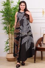 thner Dressat blends traditional batik patterns with modern fashion elements for a stylish, contemporary look..