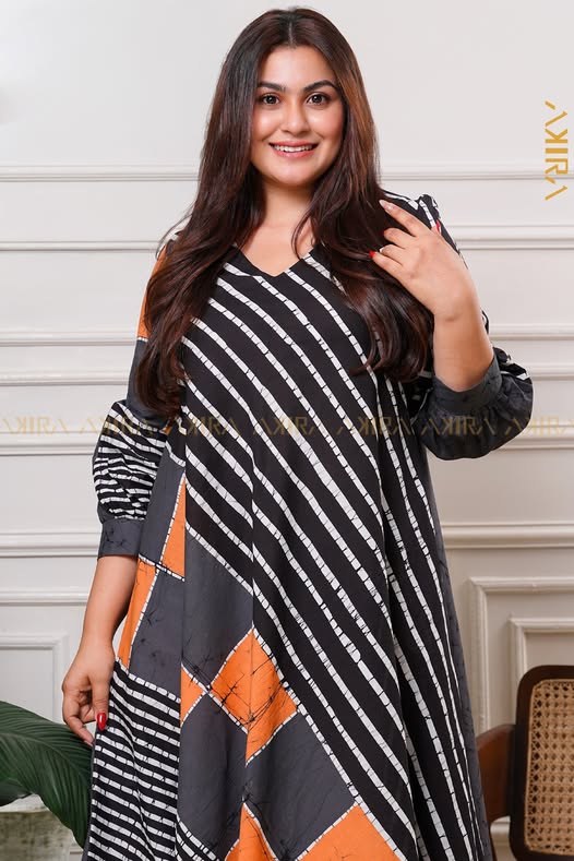Dahila Brezzed Batik Flared Dress crafted in rich batik fabric with vintage charm, tailored to modern elegance.