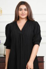 A striking dress in deep, bold tones with a refined silhouette and elegant detailing, crafted for an exclusive and sophisticated look.