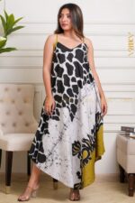 An exquisite batik cotton dress showcasing intricate handcrafted patterns with a refined, flowing silhouette. Designed for elegance and comfort, it’s perfect for festive occasions or sophisticated daytime events.