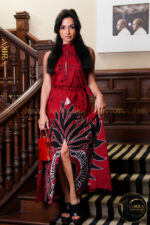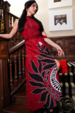 A rich green batik cotton dress, blending traditional wax-resist patterns with modern elegance for a fresh, timeless look.