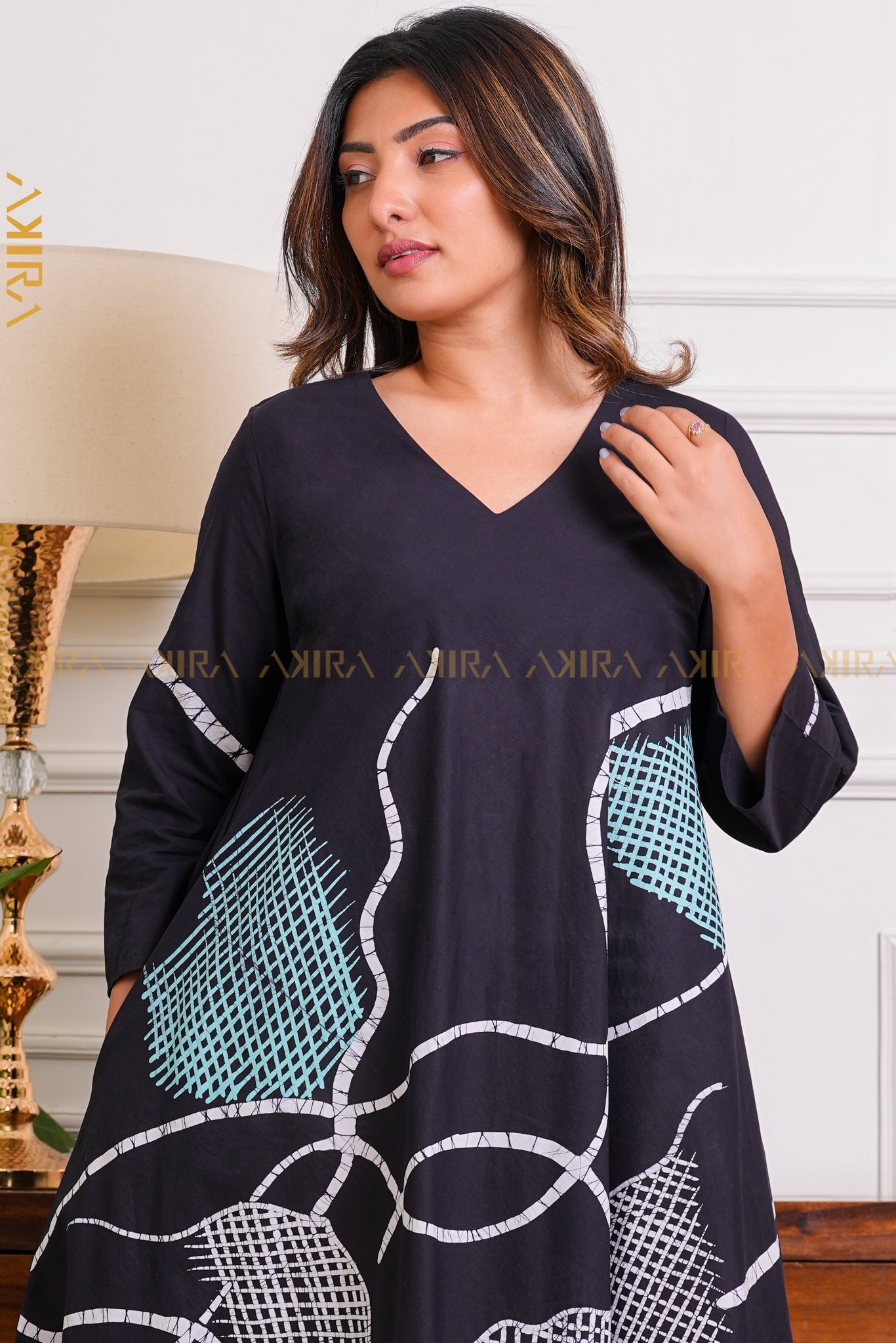 A Elegant Whisper Batik Dress , blending traditional wax-resist patterns with modern elegance for a fresh, timeless look.