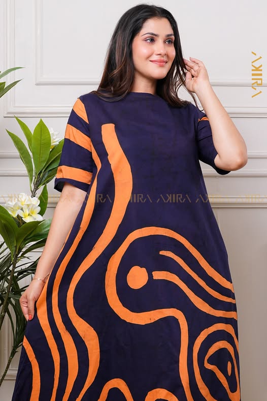 Elegant designer batik dress with refined handcrafted detailing and a graceful silhouette.