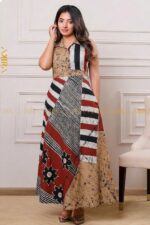 Golden imperia batik dress An elegant batik design with a refined silhouette, perfect for sophisticated evening wear.