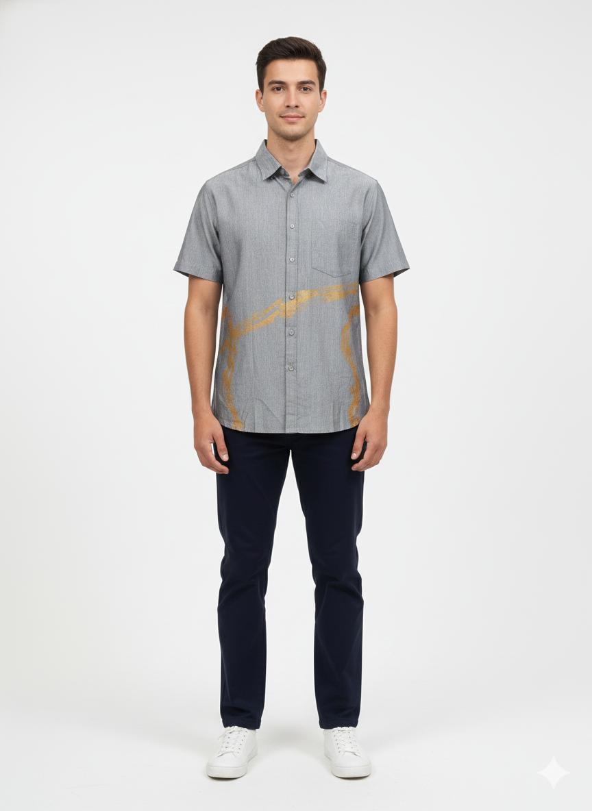 A unique handloom shirt featuring artistic painted details, blending traditional craftsmanship with modern style for a standout look.