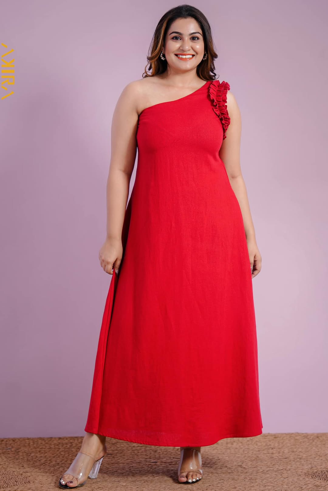 A knee-length floral print dress with ¾ sleeves, ruffle-trim drop-waist silhouette and optional belt — perfect for casual outings or dressed-up occasions.