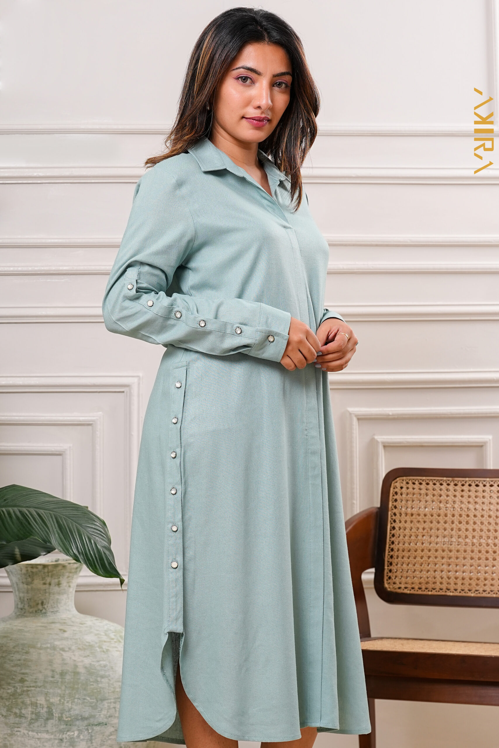 A graceful, nature-inspired dress featuring delicate vine motifs in rich indigo hues, designed for effortless elegance and timeless charm.
