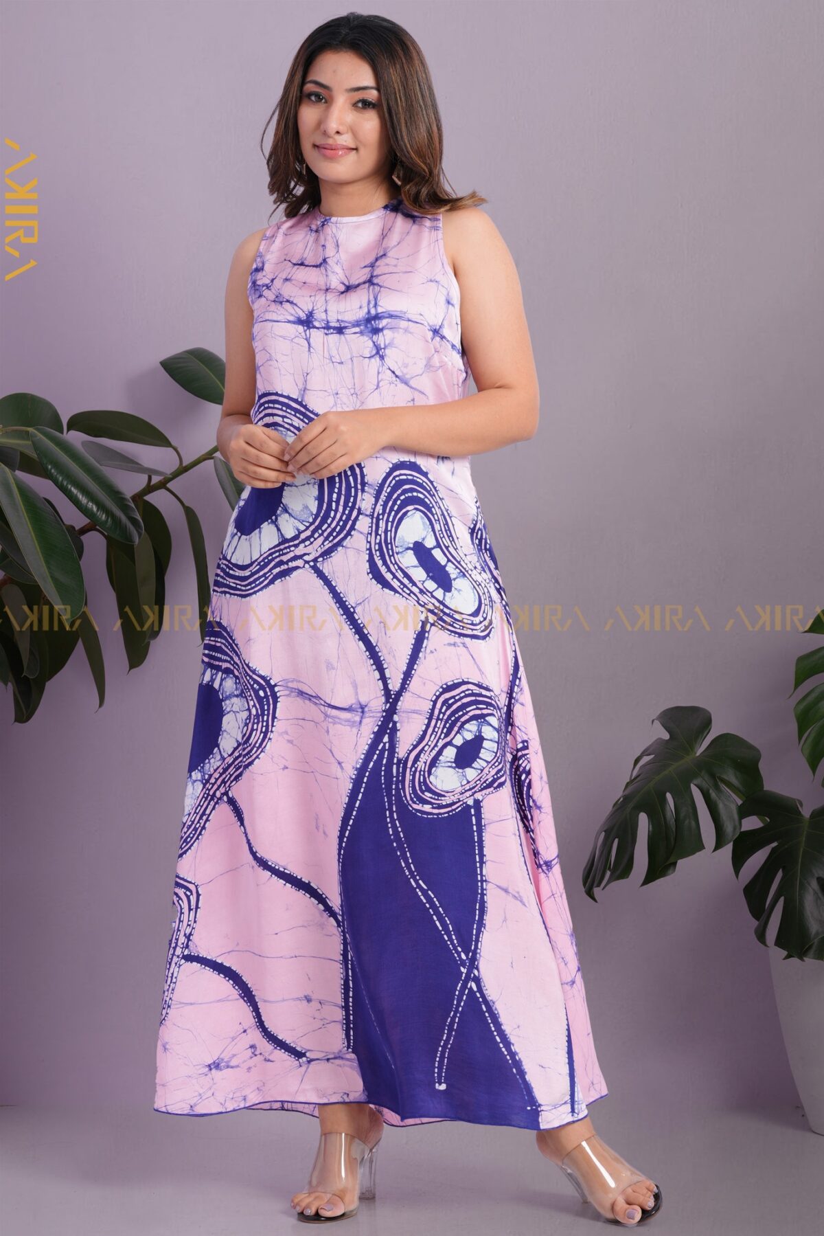Katherine Designer Silk Dress – An elegant silk creation inspired by blossoms under moonlight, exuding charm, mystery, and timeless sophistication.