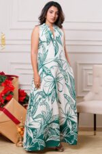A dreamy, floral-themed dress featuring soft, flowing fabrics and delicate blossom details for an elegant, fairytale look.