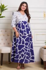 Meadow Designer Batik Dress of deep midnight hues and floral batik artistry, designed to bring elegance and charm to your evening look.