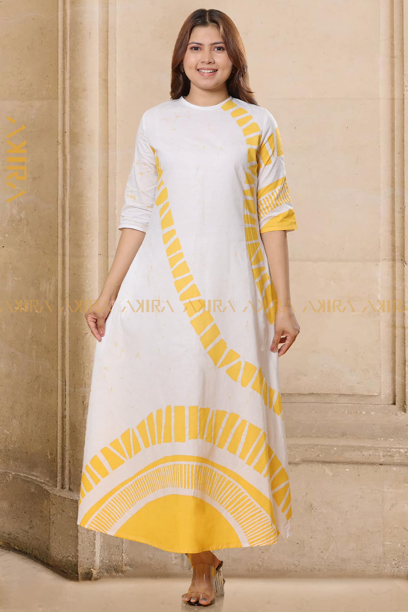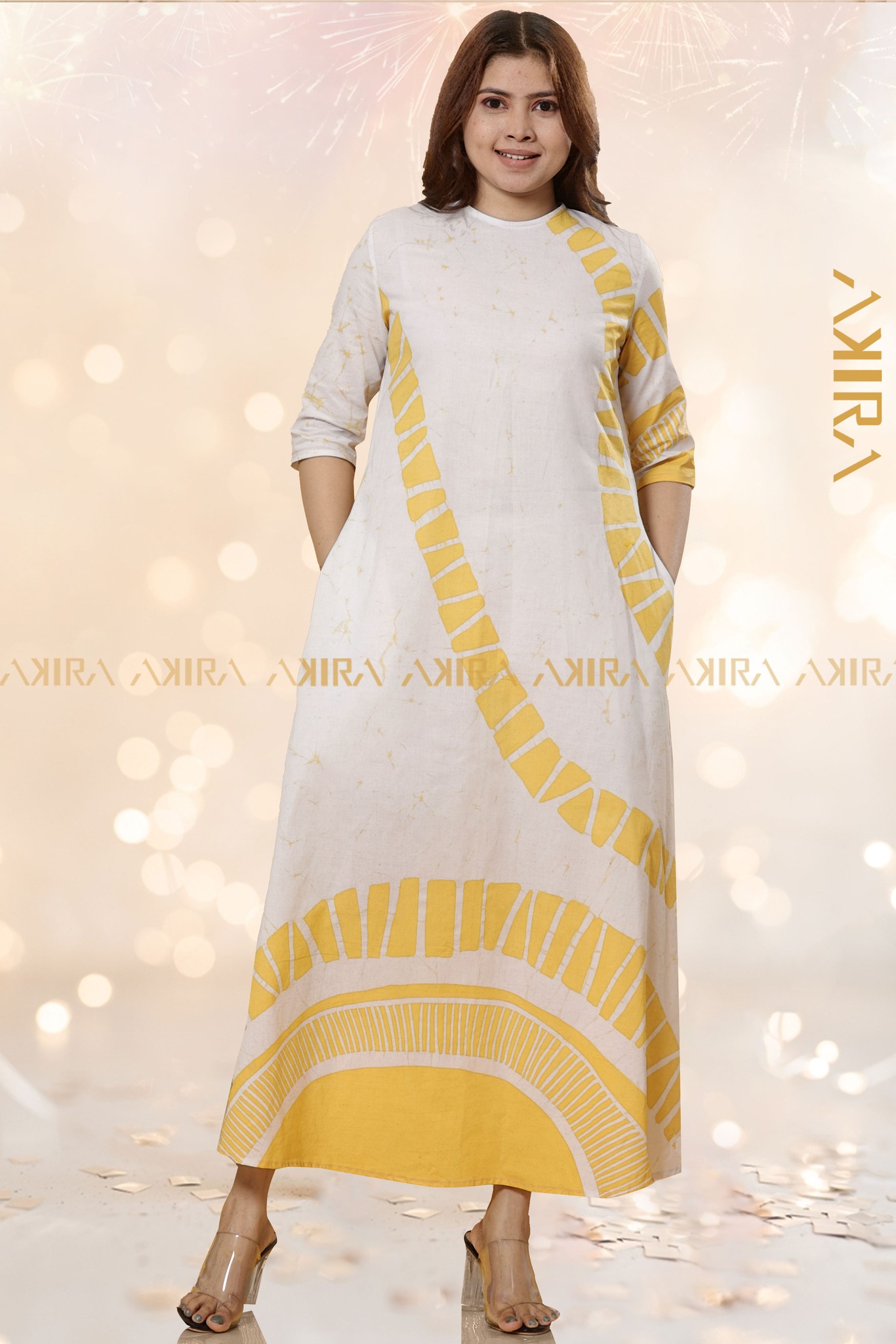 A charming batik dress with delicate patterns and a flattering silhouette, perfect for effortless elegance and everyday sophistication.