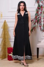 A sleek linen dress from Akira, cut in a clean, straight “line” silhouette.