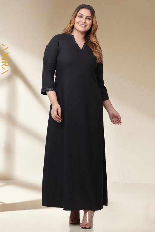 A charming dress adorned with delicate beadwork, featuring a flowing silhouette and elegant floral-inspired accents
