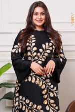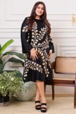 A deep, enchanting silk dress in midnight tones, perfect for a glamorous evening look.