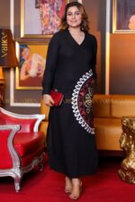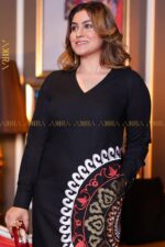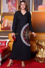 A sophisticated dress with soft, luminous tones and elegant detailing, inspired by the subtle beauty of moonstones