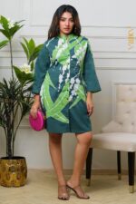 A vibrant batik dress featuring elegant ruffle detailing and a flattering silhouette, perfect for adding a touch of cultural charm and sophistication to any occasion.
