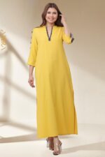 Sun Beam Linen Dress — a light and breezy linen dress featuring a warm sun-kissed hue, relaxed silhouette, and effortless elegance for everyday comfort and style.