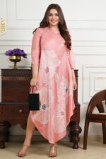A luxurious silk party dress with a sleek silhouette and refined detailing, designed to make a stunning statement at any celebration.