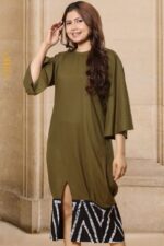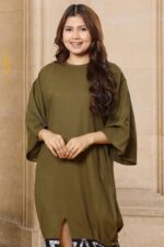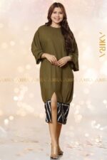 A chic dress in soft green tones, featuring a graceful silhouette and subtle detailing for a stylish and elegant look