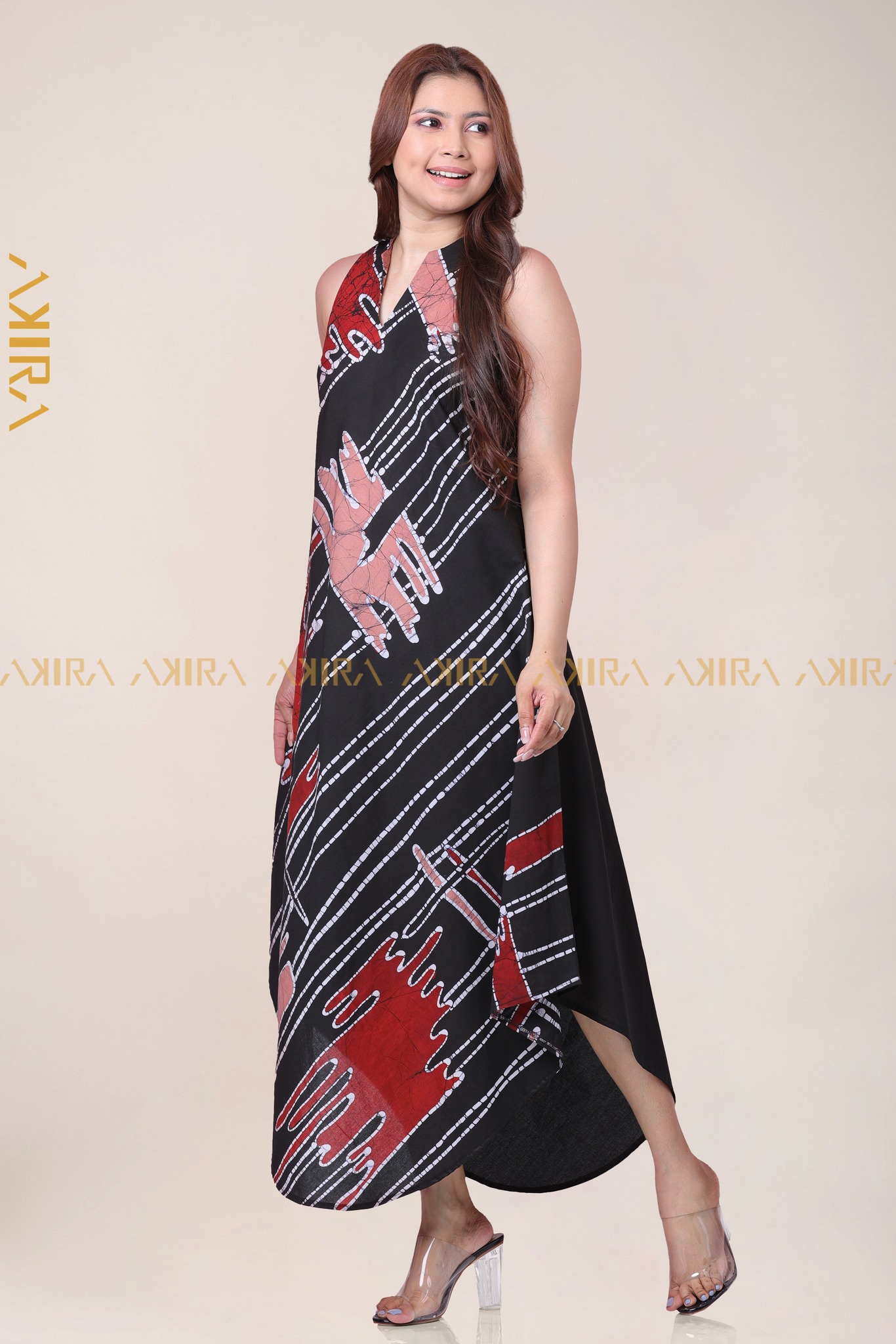 A Trend Twirl Batik Dress by the elegance of dahlias, featuring refined batik patterns in rich, feminine tones. Perfect for sophisticated gatherings and timeless charm.