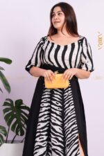 Valentina Elyssa Designer Dress  in rich crimson tones with intricate Java-inspired patterns.