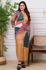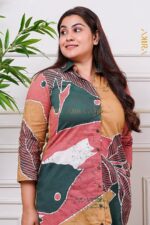 A timeless designer-dress crafted in rich batik fabric with vintage charm, tailored to modern elegance.