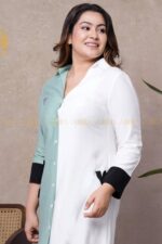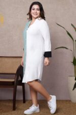 A stylish dress featuring a graceful two-tone design, blending elegance with modern charm.