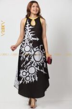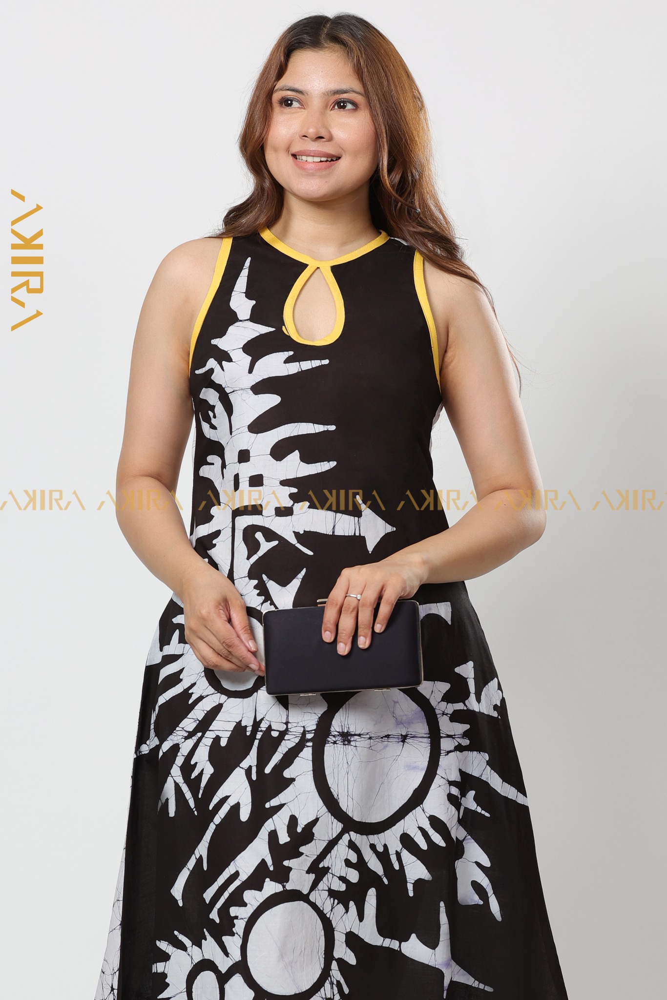 Dahila Florance Batik Dress in rich crimson tones with intricate Java-inspired patterns.