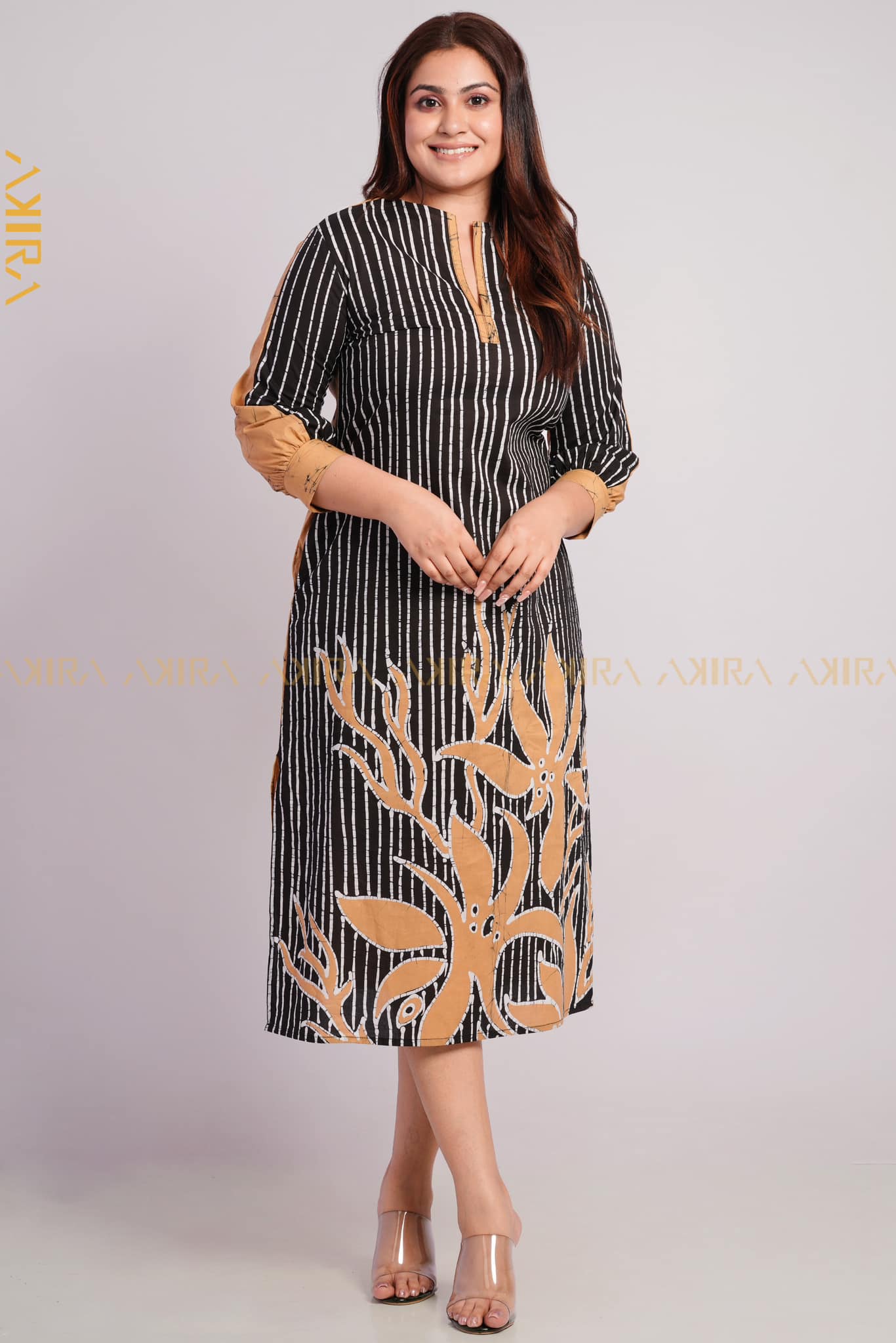 A Whispering Willow Batik Dress by the elegance of dahlias, featuring refined batik patterns in rich, feminine tones. Perfect for sophisticated gatherings and timeless charm.