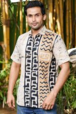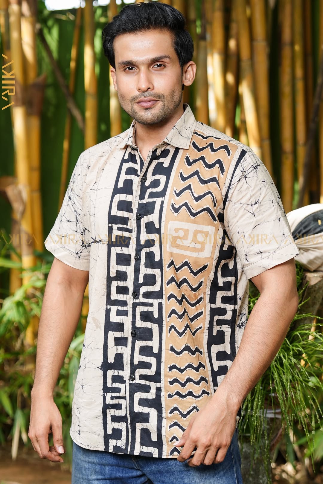 A stylish batik shirt featuring bold zigzag patterns and a modern cut, perfect for a trendy and sophisticated look.