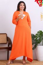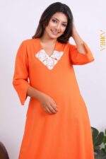 A vibrant dress in bold orange tones, featuring a chic silhouette and lively elegance for a standout look.