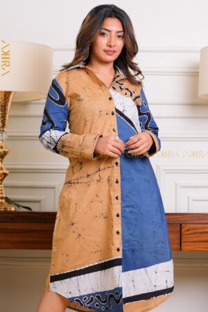 A graceful, breathable batik cotton dress adorned with delicate floral motifs, blending traditional artistry with a modern silhouette. It’s designed for warm weather or festive…